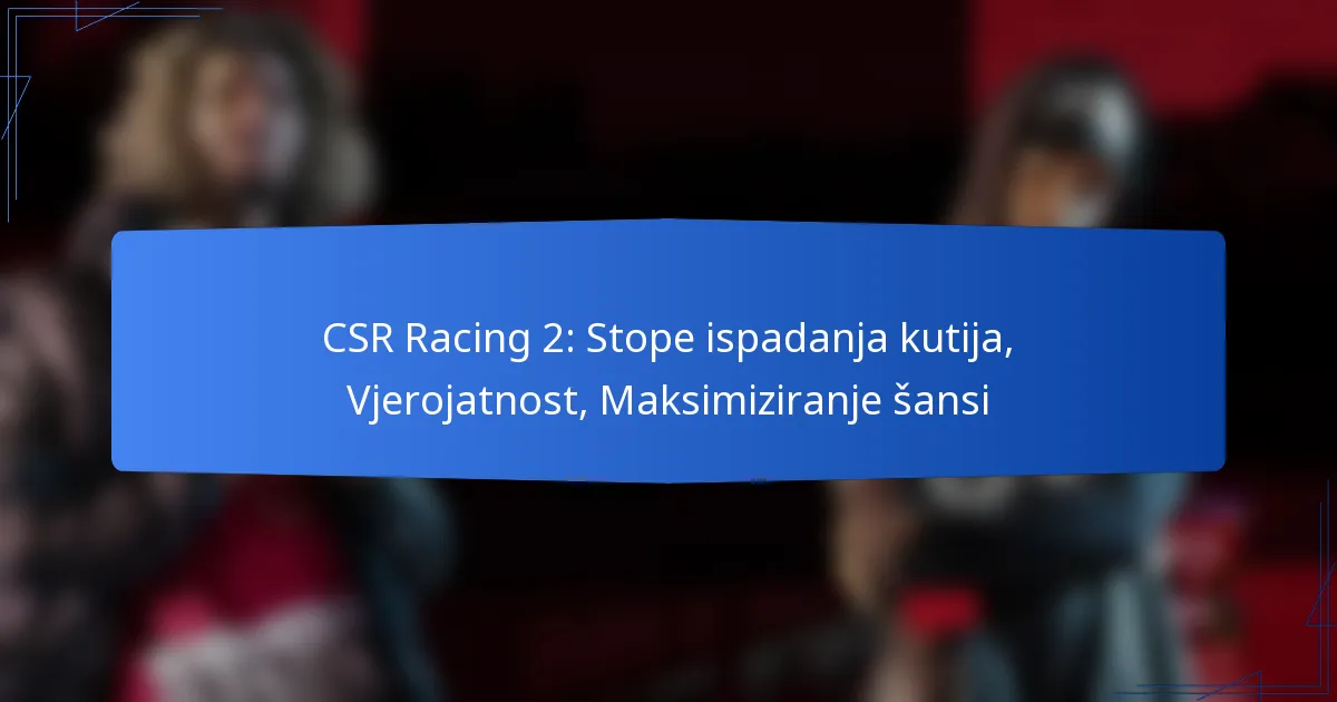 Stope ispuštanja kutija u CSR Racing 2 određuju vjerojatnost dobivanja raznih predmeta prilikom otvaranja kutija. Razumijevanje tih stopa može pomoći igračima da strategiziraju i maksimiziraju svoje šanse za dobivanje rijetkih predmeta.