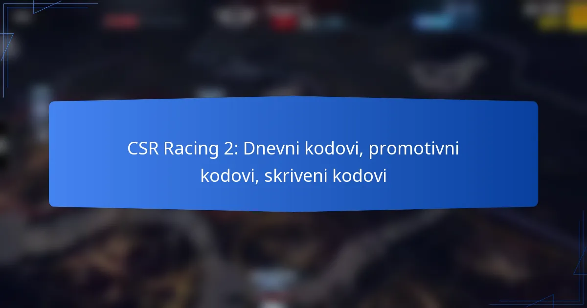CSR Racing 2: Dnevni kodovi, promotivni kodovi, skriveni kodovi